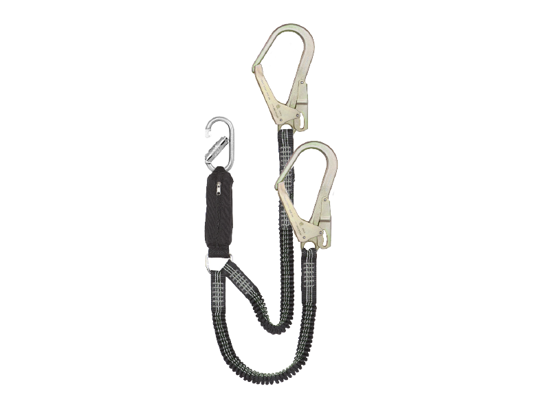 Eslinga de seguridad elástica con absorbedor de energía. Robusta cinta tubular elástica de 35 mm y 2 m de longitud.